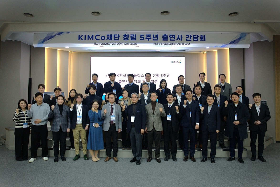 | KIMCo재단, 창립 5주년 기자간담회 개최 | | 재단은 창립 5주년을 맞아 지난 10월 1일 한국제약바이오협회 전문언론 기자단과 간담회를 갖고 벤처와 제약사가 함께 성장하는 혁신의 이어달리기 모델과 글로벌 도약을 위한 K-바이오 협력 플랫폼 등 한국 바이오 벤처 생태계 혁신 성장을 위한 새로운 비전을 제시했습니다. 허경화 대표는 신약개발 전 과정을 연결하는 협력망의 구심점이 되는 신약개발 전문 K-컴퍼니 빌더로서 KIMCo의 역할을 강조하며, 글로벌 기술 수요에서 출발하는 기업 발굴과 투자·육성을 통한 밸류업 전략으로 성과를 창출해 나가겠다는 방향성을 제시했습니다. |